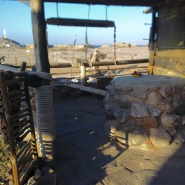 To get there, a drive around some sensational, low-lying lava rock formations which seem to have had their pause button pressed not too long ago. They wait to continue to ooze again, out into the cold and volatile salt water. The views are sporadically inspiring, with colossal, dark-clouded sea-scapes in the distance and dusty, abrasive winds heavily clogging the immediate air. On route to the point however, most long-distance sights are skewed by rocks rising up either side of the track. The volcanic obstructions blind you of a hectic, industrial mining sites, strewn with broken rock and gravel. To go anywhere off road was to trespass, marked by regular signage. They take their mining very seriously here… Although we didn’t, the rocks would have made any attempts pretty difficult. So close to town and ocean, yet we felt like we were driving on an exoplanet set Dr Who would be more familiar with. Half expecting giant, alien slugs, camouflaged against the black rock, or robot men dressed in armour made of hardened grey sand. It was like venturing into an alien mine. Maybe we took a wrong turn – not something you want to do in Namibia, as there are astronomical fines and sentences for trespassing on expansive, diamond-mine lands. I don’t know why – never trust google – but by the info we had, we expected to find some wind-swept but cosy accommodation by the sea. Instead we found a squatter’s ramshackle being taken over by sand and sea-dog; ‘hermitted’ by an aggressive, very large and loudly-drunk, abrasive Namibian chap named Tucker. He was approximately six foot six, wearing well-worn flip flops, a red headscarf, brandishing a long wooden staff and tightly gripping a lovely, warm beer. It wasn’t his first of the day and by the whiff of an ale-soaked carpet, it wasn’t his tenth either. It was an assertive welcome, and tentatively received…